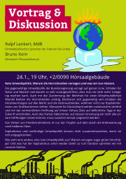 Wie sieht eine andere, eine rote Umweltpolitik aus? Warum versagen sogar grüne Vorschläge? Und was hat der Kapitalismus schon wieder damit zu tun? Darüber sprechen wir mit unseren Gästen.